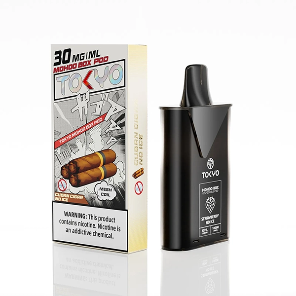 東京魔盒電子煙煙彈採用植物甘油與丙二醇基底,搭配高純度尼古丁鹽,容量 12 mL、尼古丁強度 30 mg/mL(3%),搭載 1.0Ω 鋼網棉霧化芯,設計為一次性 pod,約 10,000 口,吸引力持久。